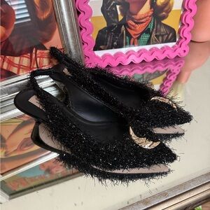 Elevate your style with ANTONIO MELANI's striking black and gold heels, featuring a unique textured design that adds a touch of sophistication to any outfit. These heels are crafted with a luxurious black material that offers a tactile and visually appealing experience. The gold accents provide a subtle yet elegant contrast, making these shoes a standout choice for any special occasion. NWOT