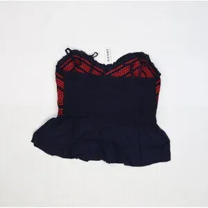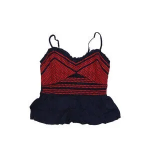 Old Navy Top Womens Medium Blue Red Smocked Peplum Tank Sleeveless Embroidered Boho