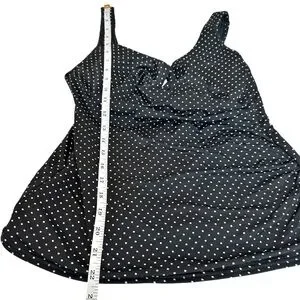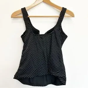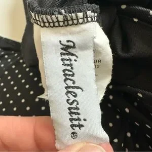 Miraclesuit Tankini Swimsuit Top Black Polka Dot Ruched Underwire Padded Size 12