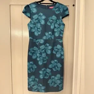 Betsey Johnson Blue Flower Cocktail Wedding Professional Workwear Dress 10