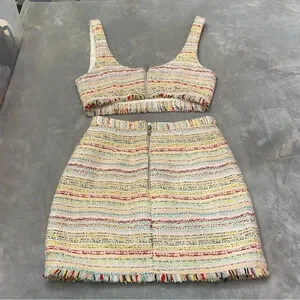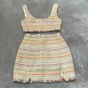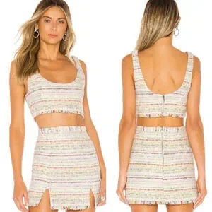 NBD Shawna Tweed Crop Top & Blair Mini Skirt Set in Pastel 27014