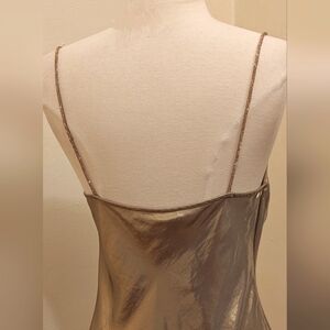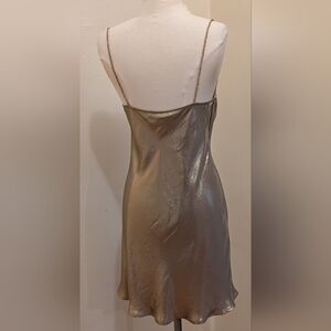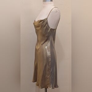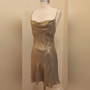Shimmer in style with this elegant gold slip dress. Perfect for any occasion, this dress offers a sleek and sophisticated look.