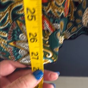 This LuLaRoe skirt features a vibrant green and orange palette, perfect for casual or resort wear. Its pleated A-line design offers a flattering silhouette, while the midi length adds a touch of elegance. The skirt's dynamic pleats create a sense of movement, making it a versatile addition to any wardrobe.