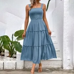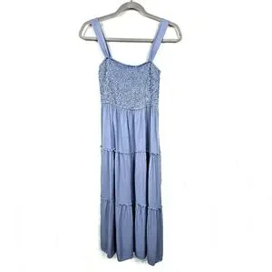 I bought this on TikTok but never wore it. Cute viscose sundress with straps and smocked top. Ruffled maxi length skirt. Approximate measurements: 13" chest, 12" waist, 44" length.
