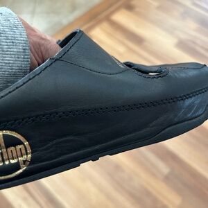 FitFlop Black leather sandals. Microwobbleboard Technology. Size 7. Gold details