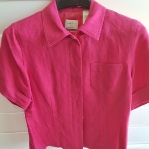 Emma James Hot Pink Blazer Short Sleeve and Linen Pant Suit Set