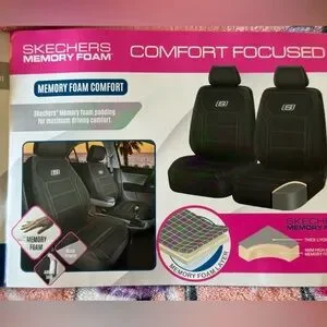 SKECHERS MEMORY FOAM Stylish black car seat cover with a smooth finish. Adds elegance to your car interior. 2 covers and 2 headrest covers. New in open box.