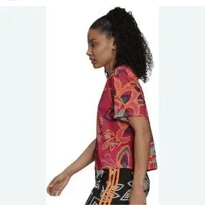 Elevate your casual style with this Adidas Farm GFX Tee featuring a vibrant pink and orange color palette. The short sleeves and all-over abstract design make it a standout piece for any streetwear enthusiast. Crafted from comfortable cotton, this tee offers both style and comfort for everyday wear. New