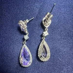#purple CZ earrings, white gold plated earrings, sterling silver earrings, formal, special occasion, gala event, wedding, bridal, bridesmaids, CZ earrings, dangle earrings, formal earrings, white gold over Sterling silver jewelry, gifts for women, gifts for girls, birthday, holiday