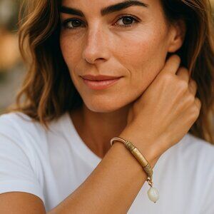 J. Jill Charm Bracelet Stone Glass Bead Antique Gold Tone Braided Cord Hook NWT