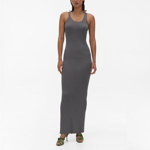 Helmut Lang Ring Tank Ribbed Maxi Dress. Bodycon fit. Thick ribbed material. Sartorial steel gray color. Size large. Silver hardware ring detailing on the strap. New with tags.
