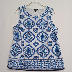 Talbots Top Sleeveless Tile Print Tank Blouse Size 10 Petite