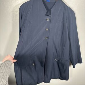 Marithe Francois Girbaud Vintage Women's Navy Travel Suit Long Blazer Jacket European Size 42