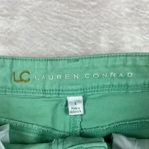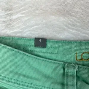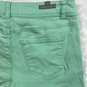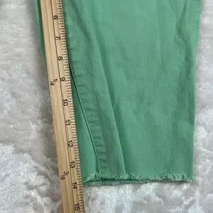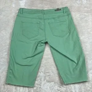 Stylish green jean shorts. Comfortable fit. Perfect for casual wear.