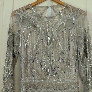 ASOS Edition Silver Sequin Open Back Gown NWT Size 12 Formal Dress