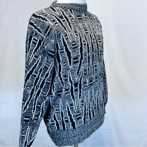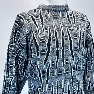 VINTAGE 80s abstract geometric art knit sweater mens crewneck funky quirky
