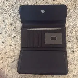 This elegant Coach wallet showcases a refined black and gray color palette, embodying the brand's iconic style. Crafted with precision, it features the classic Coach monogram pattern, making it a timeless accessory for any occasion. Its compact design ensures both style and functionality, perfect for elevating your look.