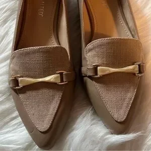 Elevate your style with The Limited's tan flats, featuring a sleek pointed-toe design and a chic gold bar accent. Crafted for comfort, these loafers offer a cushioned interior and a versatile silhouette perfect for professional and casual settings alike.