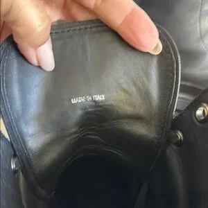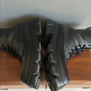 Sleek black leather boots by Prada. Stylish and durable design. Perfect for any occasion.