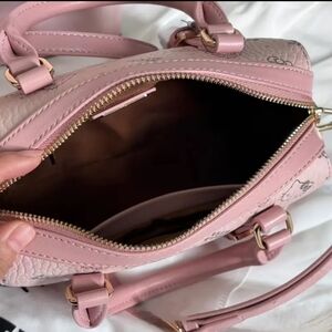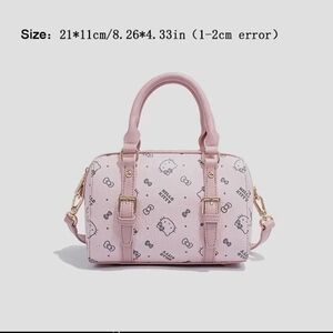 This adorable Hello Kitty mini bag features a delightful pink hue with a glossy finish, adorned with charming bow details and the iconic Hello Kitty motifs. Its compact size makes it perfect for carrying essentials while adding a playful touch to any ensemble.
