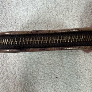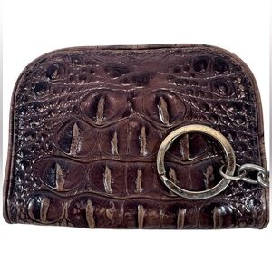 Brahmin Dark Brown Embossed Leather Mini wallet/coin zip around
