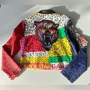 AZALEA WANG Studded Moto Jacket, Wonka Colors Rock Star Game Moto Jacket Sz: XL