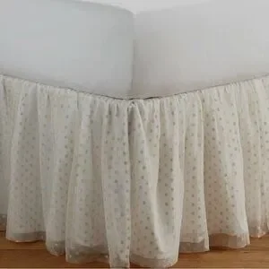 Pottery Barn Teen Emily & Meritt Bed Skirt Full Tulle Tutu Polka Dot Gold/White