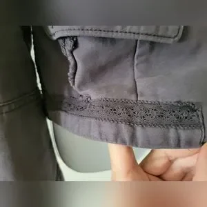 •Detail: Lace trim, Semi-distressed accents, Gingham pattern in back, Mismatched buttons