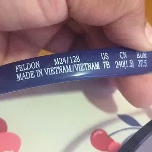 Chic flip flops with cherry print. Features glossy black straps. Perfect for casual wear.