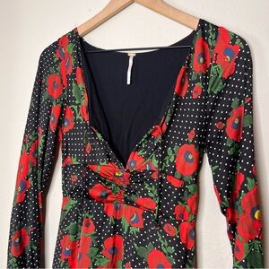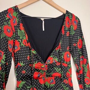 Free People Women's Morning Light Floral Print Ruched Casual Dress Mini Size 0