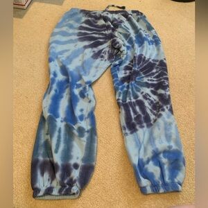 Blue spiral tie dye sweatshirt and joggers set. Glitter logos!!
