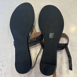 Calvin klein brown and black monogrammed sandles with gold toned hardware