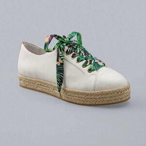 White House Black Market White Espadrille Sneakers with Green Tropical L…