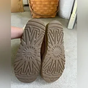 Experience ultimate warmth and comfort with UGG's winter boots, featuring a plush cream sheepskin lining and a durable brown suede exterior. These slip-on boots are designed for easy wear, making them perfect for cold weather outings. With their classic round toe and cozy ankle height, they are an essential addition to your winter wardrobe.