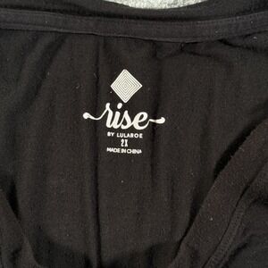 Brand marking: Rise by LuLaRoe logo printed inside collar and small metal square logo near hem