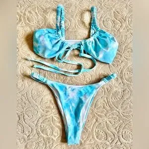 SHEIN BLUE AND WHITE TIE-DYE BIKINI SET -SIZE M