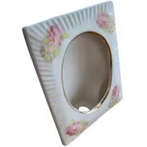 VINTAGE 1980’s Rectangular Picture Frame Porcelain Pastel Flowers Oval Cut Out
