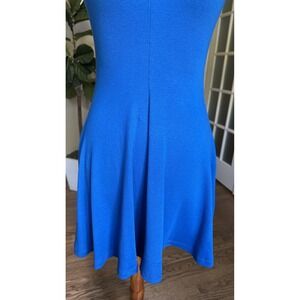 Zara Blue Lapel Collared Sleeveless Ribbed Skater Knit Mini Dress Size M