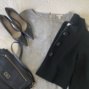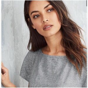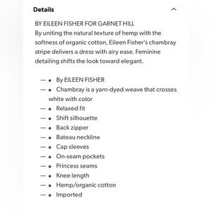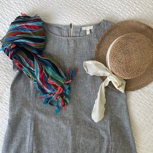 Eileen Fisher Hemp and Organic Cotton ministripe chambray shift Dress S