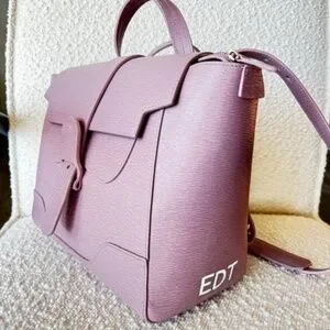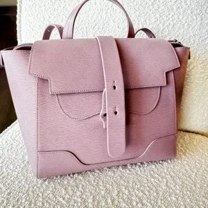Senreve MIDI MAESTRA MIMOZA. Amazing Light Lavender/Pink Color. Mimosa has a long-grain bark-like finish, which makes the leather more structured and substantial than Pebbled. It is moderately water, stain, and scratch-resistant. Pristine, like new condition. Note the bag is monogrammed. See photo. Price reflects it. Best price!