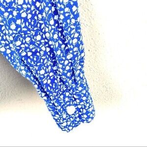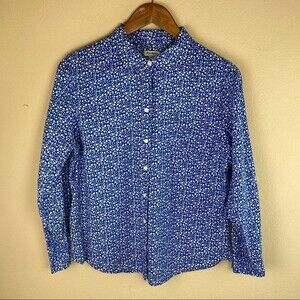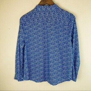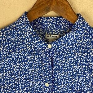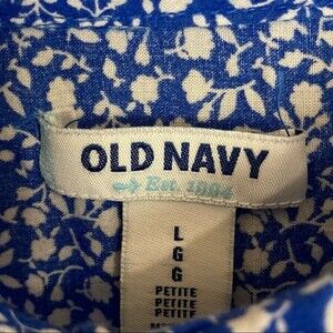 Old Navy Women's Large Petite Long Sleeve Button Down Top Blue and White
