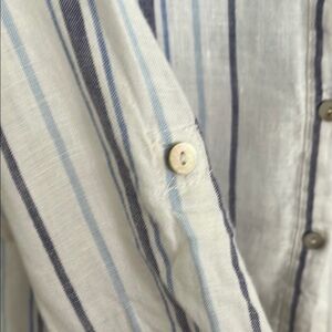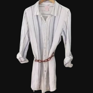 Chic linen piece by St. Tropez. Ideal for casual elegance. White with striped of a variety of blues. Tabbed sleeves and vented/slit sides. Great with jeans or leggings or even as a beach coverup. Belt shown in photo for style purposes (sold separately). Size M. In fabulous, pre-loved condition. Consider bundling this item with 2 additional items for a bundle discount. I'd be glad to build you a special bundle listing of 3+ items on a Closet Clear Out day so you can receive the $4.99 discounted shipping offer from Poshmark. Thank you for viewing and reading. Happy Poshing!
