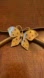 Golden bronze tone metal. Butterfly with enamel detail. Substantial weight, well made. Chain belt is stretchy and slinky.