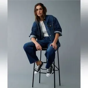 New with tags American Eagle Ex-Boyfriend Denim Jacket. ⭐️Color: Dark Wash ⭐️Rigid cotton denim ⭐️Collared neck ⭐️Button-up front ⭐️Chest patch pockets with button flap closures ⭐️Adjustable cuffs ⭐️Oversized fit ⭐️Longer length ⭐️Long sleeves ⭐️87% Cotton, 13% Recycled Cotton ⭐️Imported ⭐️Approximate measurements: -Pit to pit 24” -Length 27 1/2” -Arm length 22 1/2”.