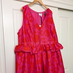 NWT Kate Spade for Target Peplum Floral Print Dress Midi Orange Pink Women's 22
