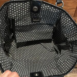 This is a lulu Guinness London tote bag with matching wristlet. It has a few marks on it and one on the bottom but overall good shape. It has one interior pocket. It measures 17” x 11” x 6” and the wristlet is 6” x 4”. Feel free to make me an offer.