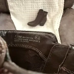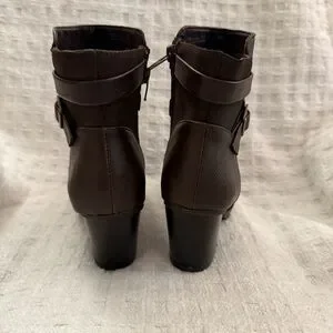 A2 Aerosoles Ankle Boots Invitation Brown Faux Leather Side Zip Heels