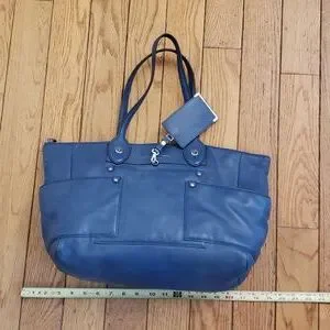 gorgeous shadeof blue, the perfect neutral! love this tote, lots of pockets. so easy to keep things organized.