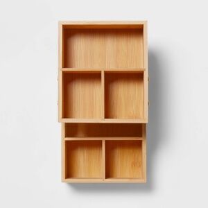 Keep your space tidy with this elegant bamboo organizer. Featuring a natural wood finish and convenient hinges for more space, it's perfect for any room.
