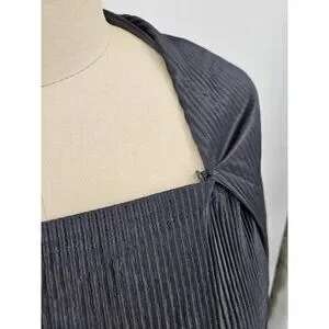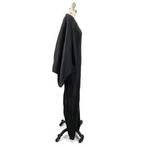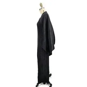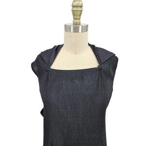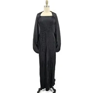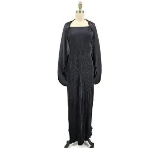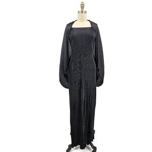 VTG Issey Miyake Black Pleated Maxi Dress Size 4 Attached Jacket Sleeves